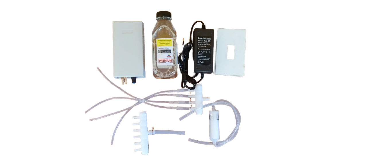 Промывочный раствор подается через трубку в станцию, предварительно пройдя через фильтр тонкой очистки, (интенсивность подачи раствора регулируется), далее жидкость поступает через разветвитель на печатающую головку. Головка ставится в держатель под которым расположен контейнер для сбора отработанной жидкости.